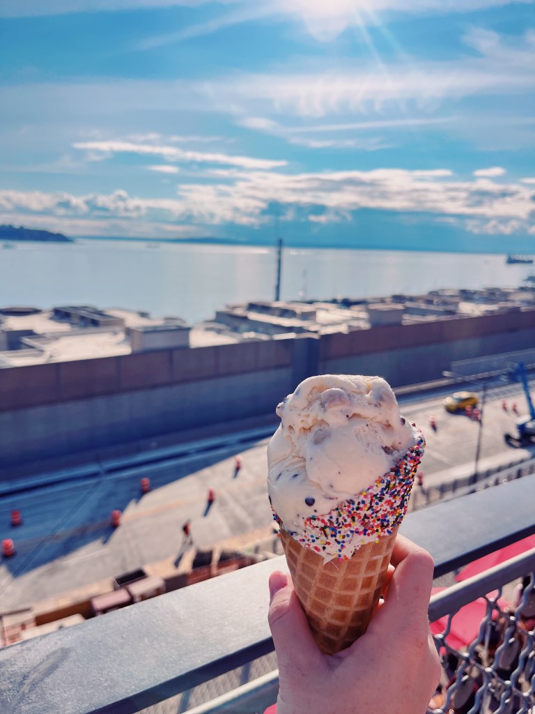 The first Starbucks ever had a long line down the block, so I only poked my head inside. Instead, I stopped at a cute little ice cream shop, and enjoyed a chocolate covered sprinkle cone with a scoop of cookie dough ice cream on the pier.