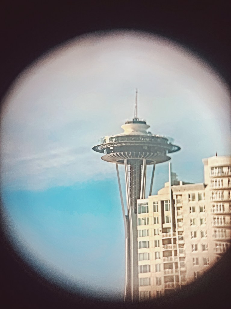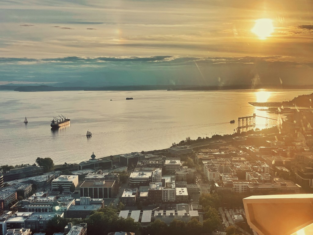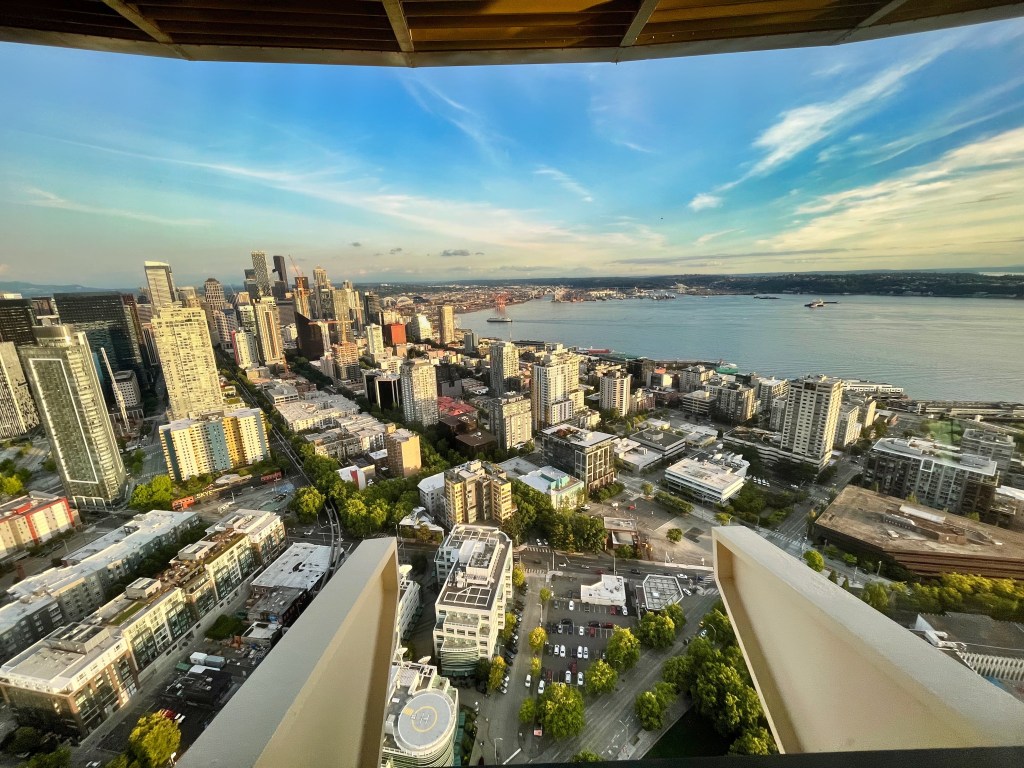Afterward, I took myself to the Space Needle, the most iconic puzzle piece in the Seattle skyline. I spent two hours up there, taking it all in. The thrilling, tilted glass bench on the top level, and the daunting, rotating glass floor on the bottom. 360 degrees of marvelous views: Puget Sound at sunset, Queen Anne Hill, and of course, the city skyline (minus the star of the show, my current residence in the sky). I dreamt of outer space and what it must have felt like in 1962, with very realistic hopes of reaching the moon “before this decade is out”.